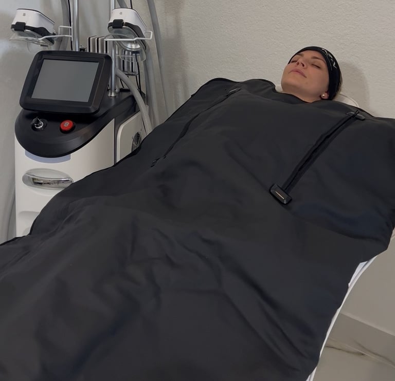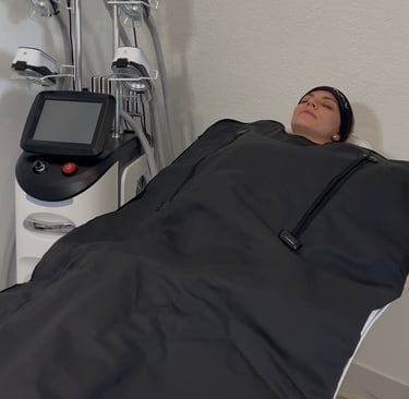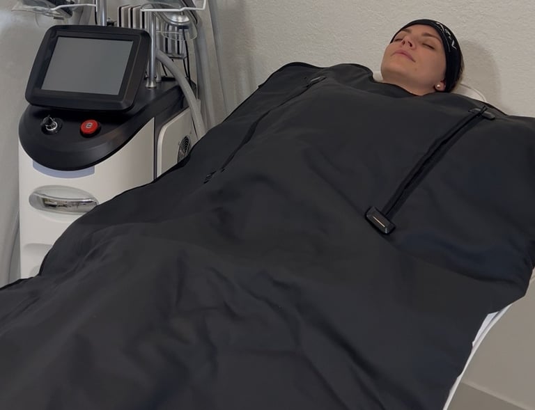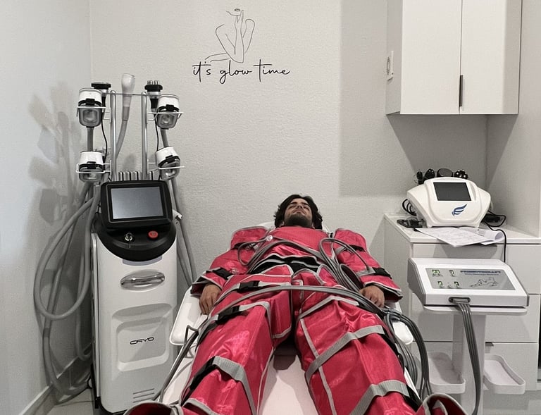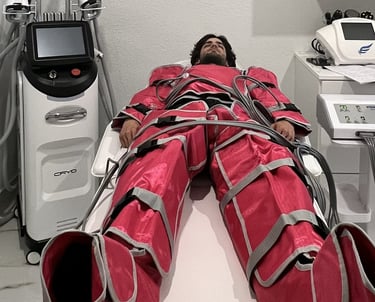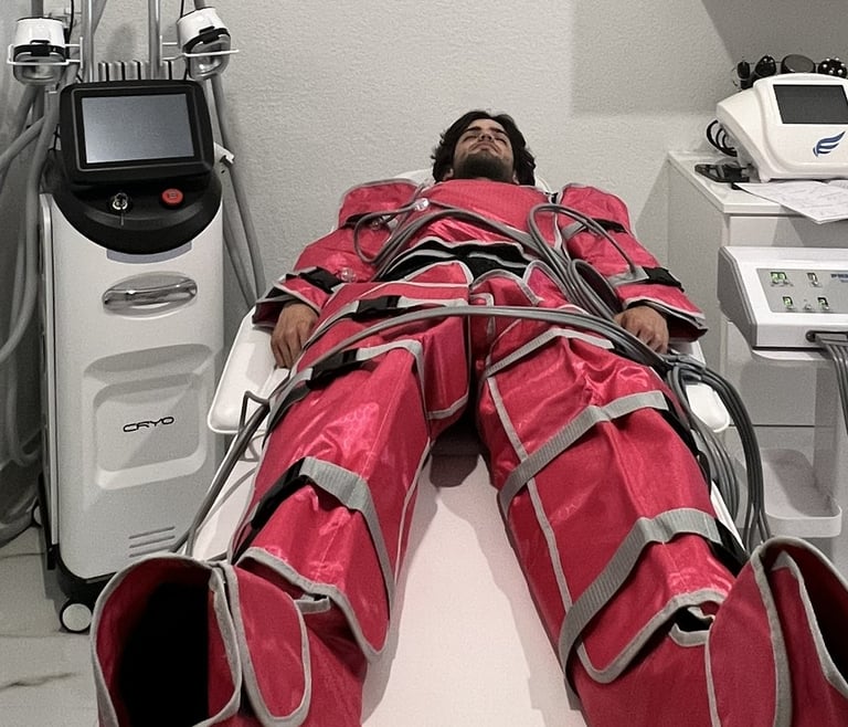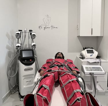Pressotherapy is a non-invasive treatment that uses gentle air pressure to stimulate the lymphatic system, reduce fluid retention, and improve circulation. It helps detoxify the body, relieve swelling, and enhance the results of body contouring treatments by promoting natural drainage and recovery.