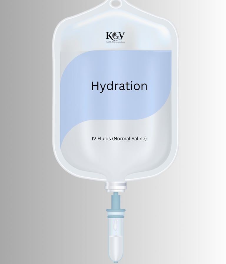 At KGV Health & Rejuvenation IV Hydration Therapy delivers fluids, electrolytes, and essential vitamins directly into your bloodstream, allowing for immediate absorption and faster results than oral hydration. Each infusion is carefully formulated to restore balance, boost energy, and enhance overall wellness. You’ll begin to feel refreshed and reenergized as your body receives exactly what it needs — instantly and efficiently.